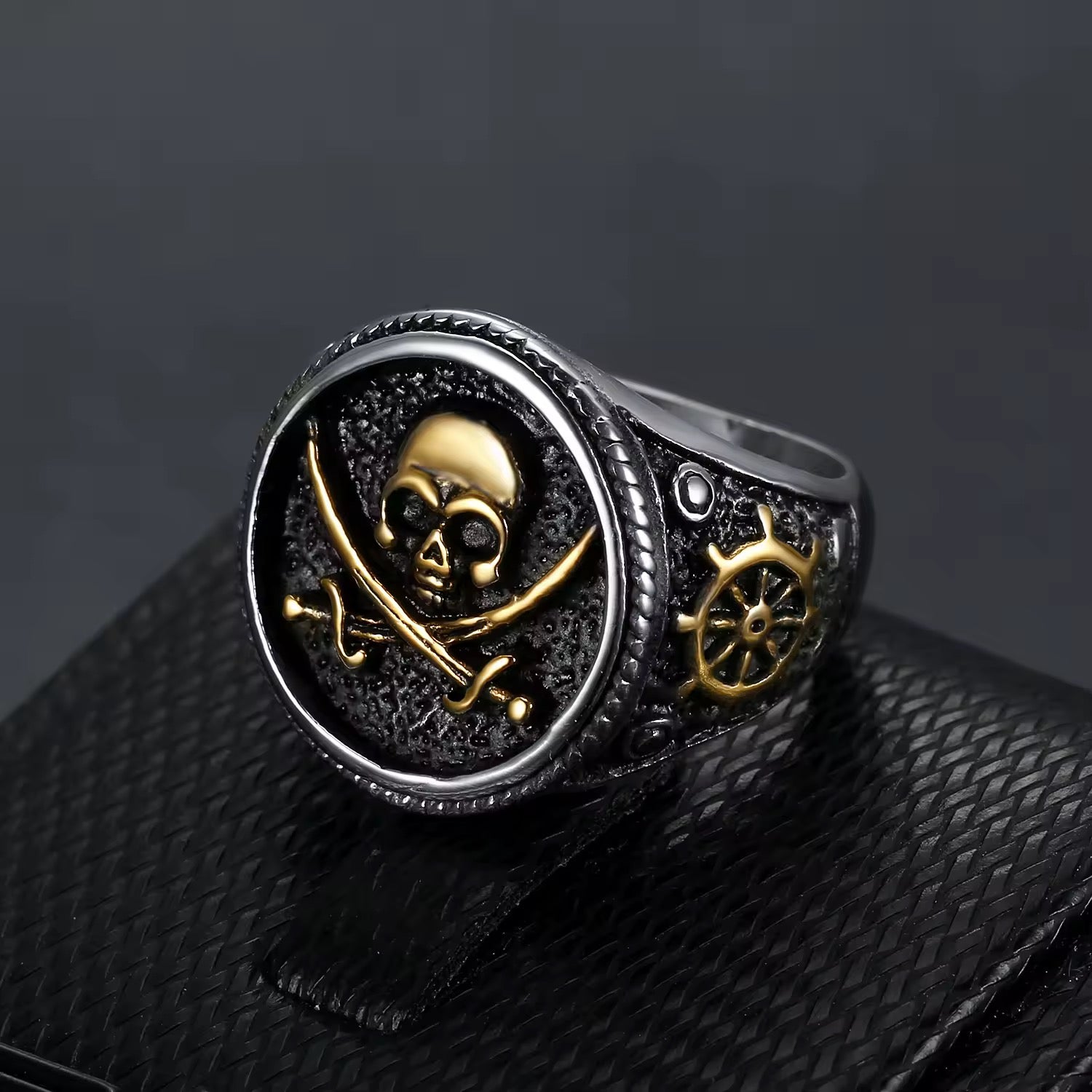 Ajoutez une touche rebelle à votre style avec cette bague pirate skull pour homme.