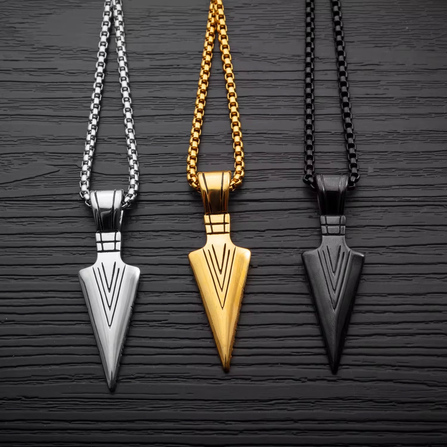Affirme ton style avec ce collier au design tranchant et moderne. Inspiré par la force et la précision, ce pendentif en forme de pointe symbolise l’audace et la puissance d’un homme qui vise toujours juste.