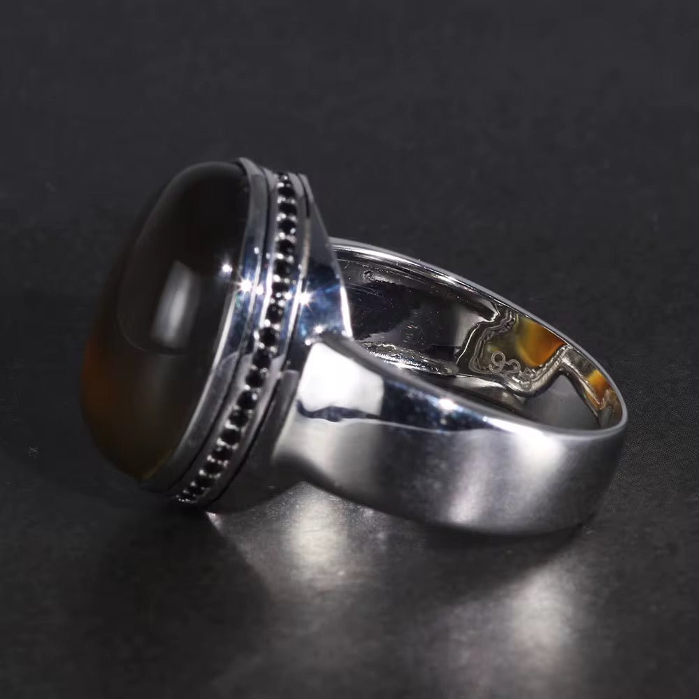 Son design, inspiré des parures royales de l'Assyrie antique, a été façonnée pour traverser les âges. La pierre, née des forces de la nature au fil des siècles, est considérée comme le miroir de l'âme. Ses reflets changeants, mystérieux et hypnotiques, sont capables de renforcer l'énergie et la prestance de son porteur.
