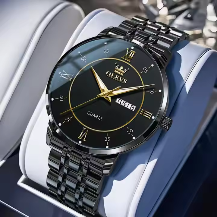 Découvrez la fusion parfaite entre minimalisme et distinction. La OLEVS 3680 noire séduit par son cadran épuré, ses aiguilles dorées et ses chiffres romains élégants. Une montre pensée pour les hommes exigeants qui aiment les belles pièces.